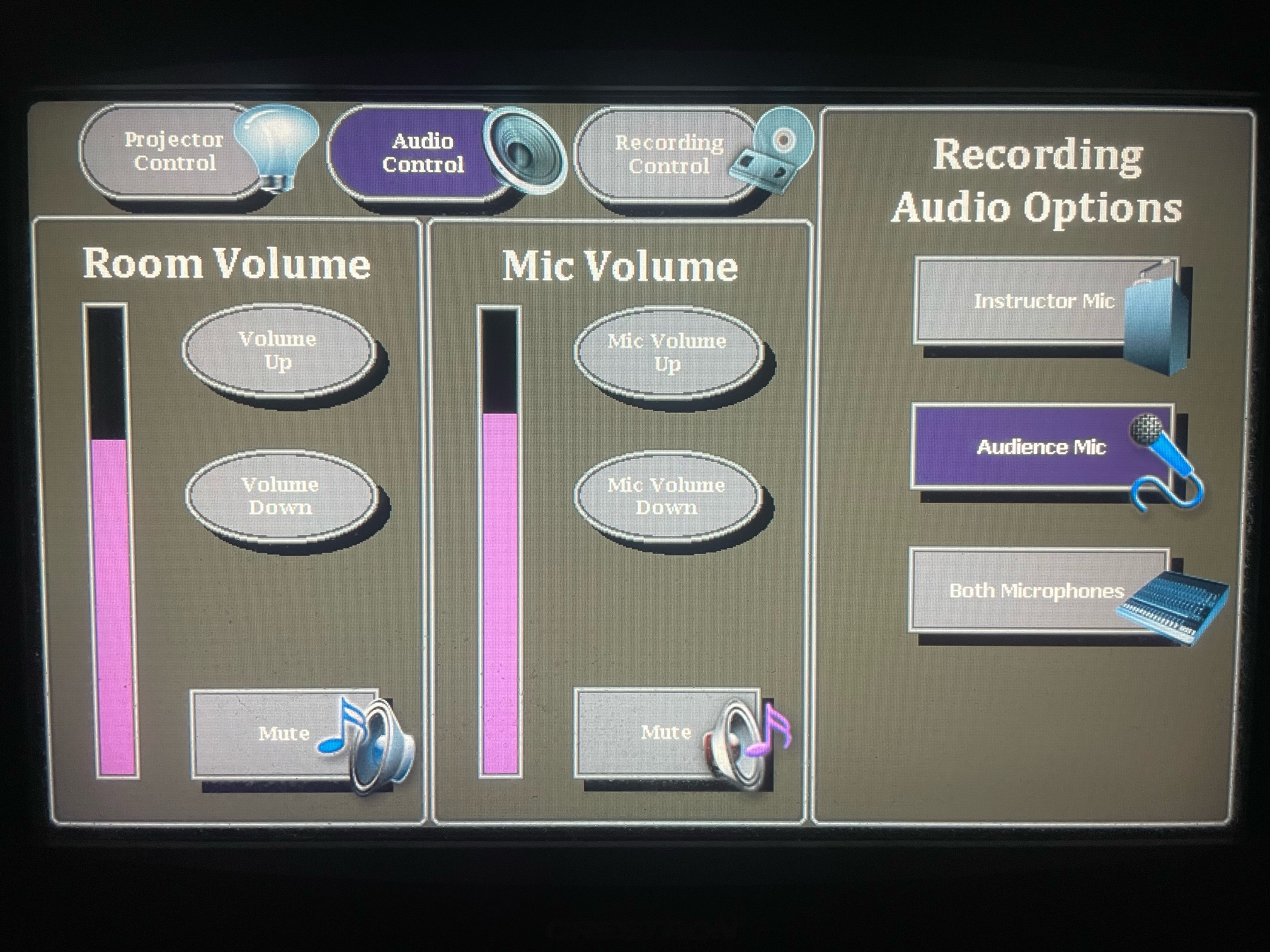 Subsequently, in the "Audio Controls" menu, the Mic Volume function will allow users to control the microphone volume output levels of the lecture room.